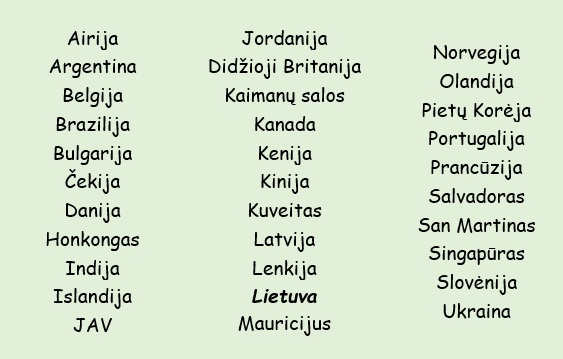 | Šiose valstybėse 2025 – 2026 m.m. įgyvendinamos programos ZIPIO DRAUGAI ir / ar OBUOLIO DRAUGAI | |