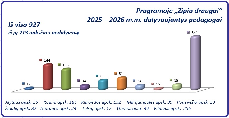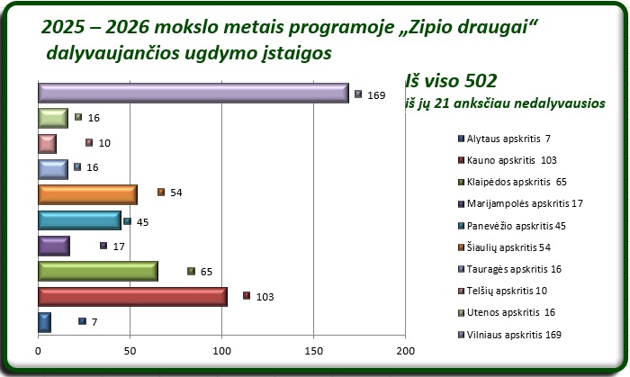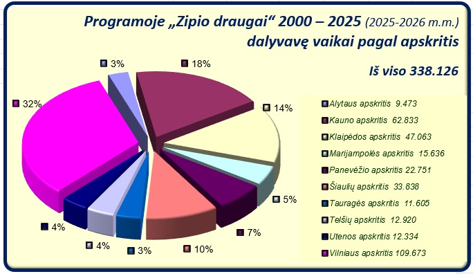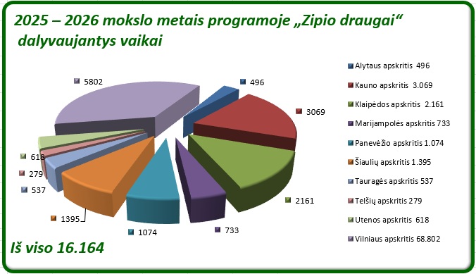 2025 – 2026 mokslo metų programos „Zipio draugai“ dalyvių statistika:
