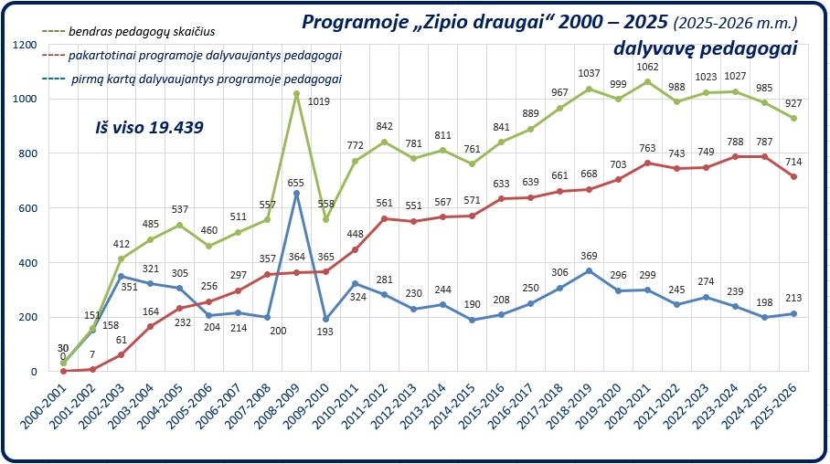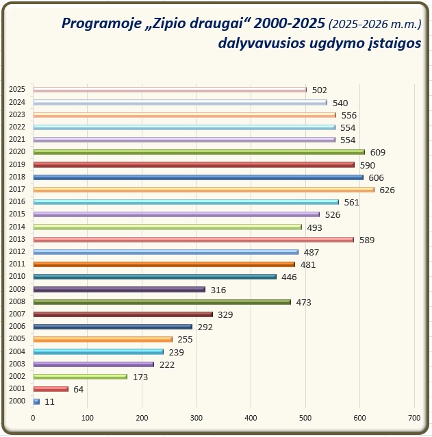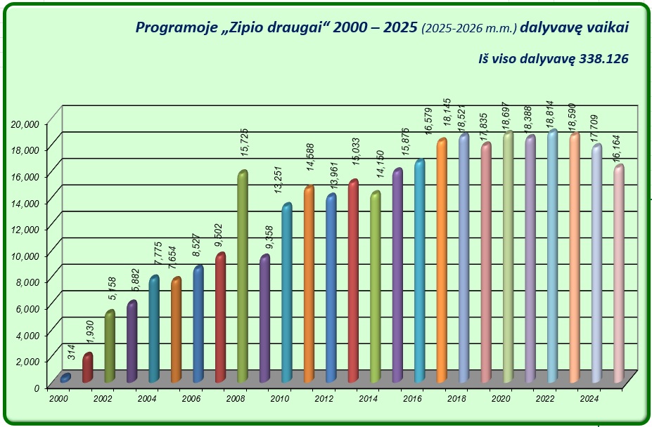 Programos „Zipio draugai“ dalyvių statistika nuo jos įgyvendinimo pradžios: